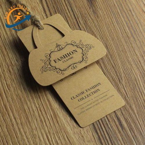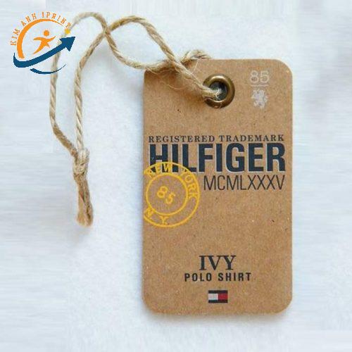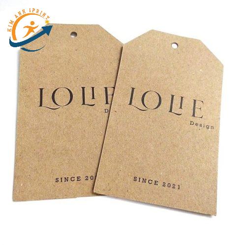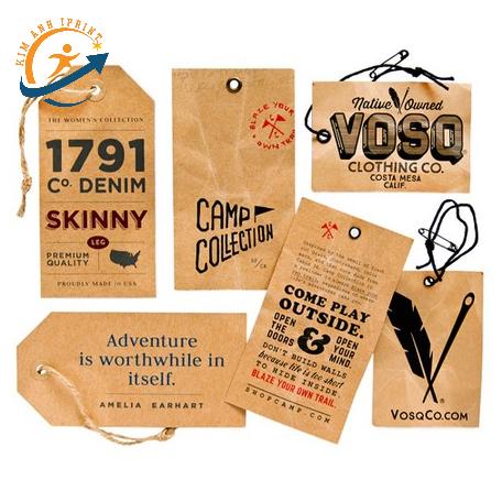 Tag quần áo bằng giấy Kraft là lựa chọn phổ biến nhờ màu sắc độc đáo, độ bền tốt và chi phí in ấn rẻ.